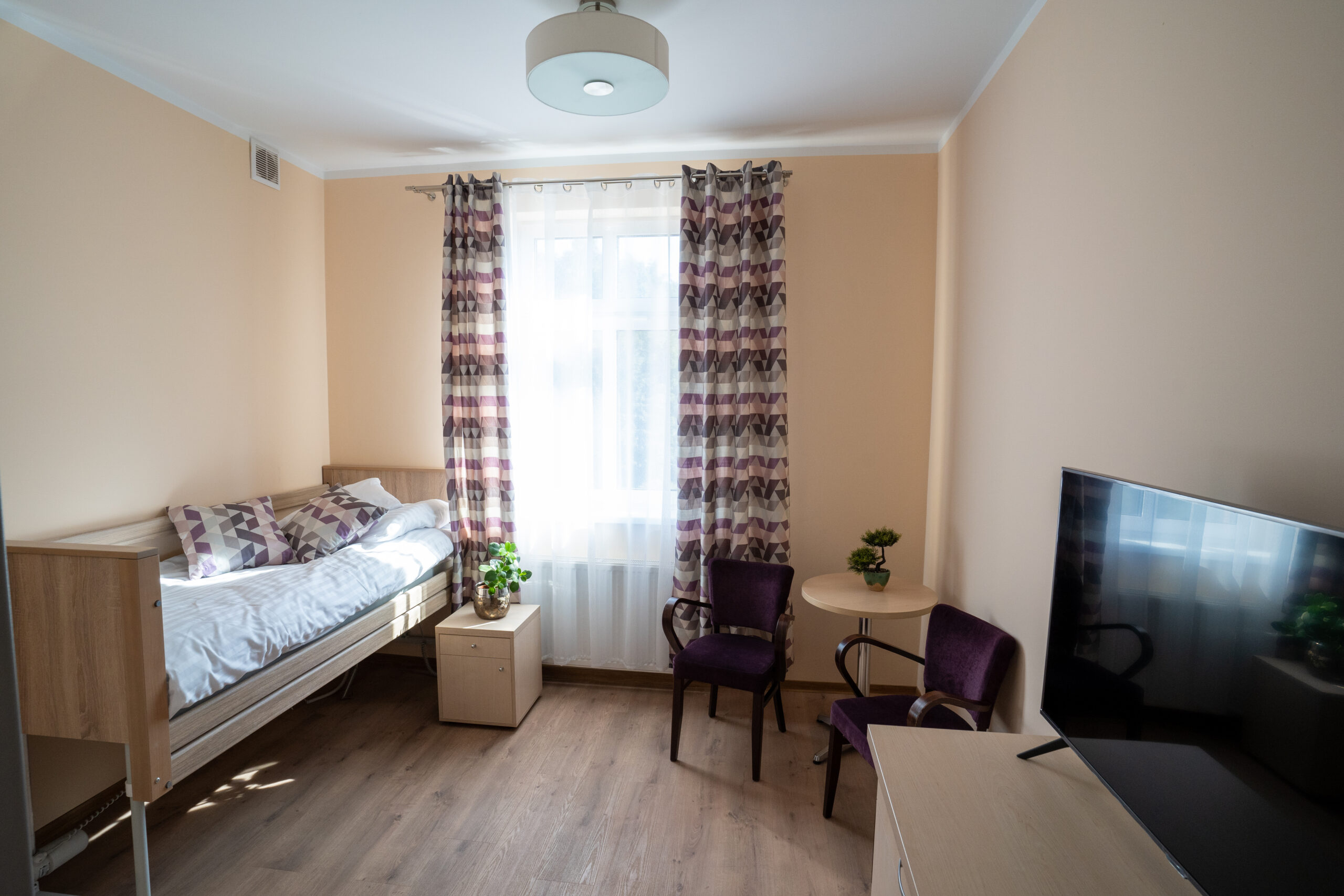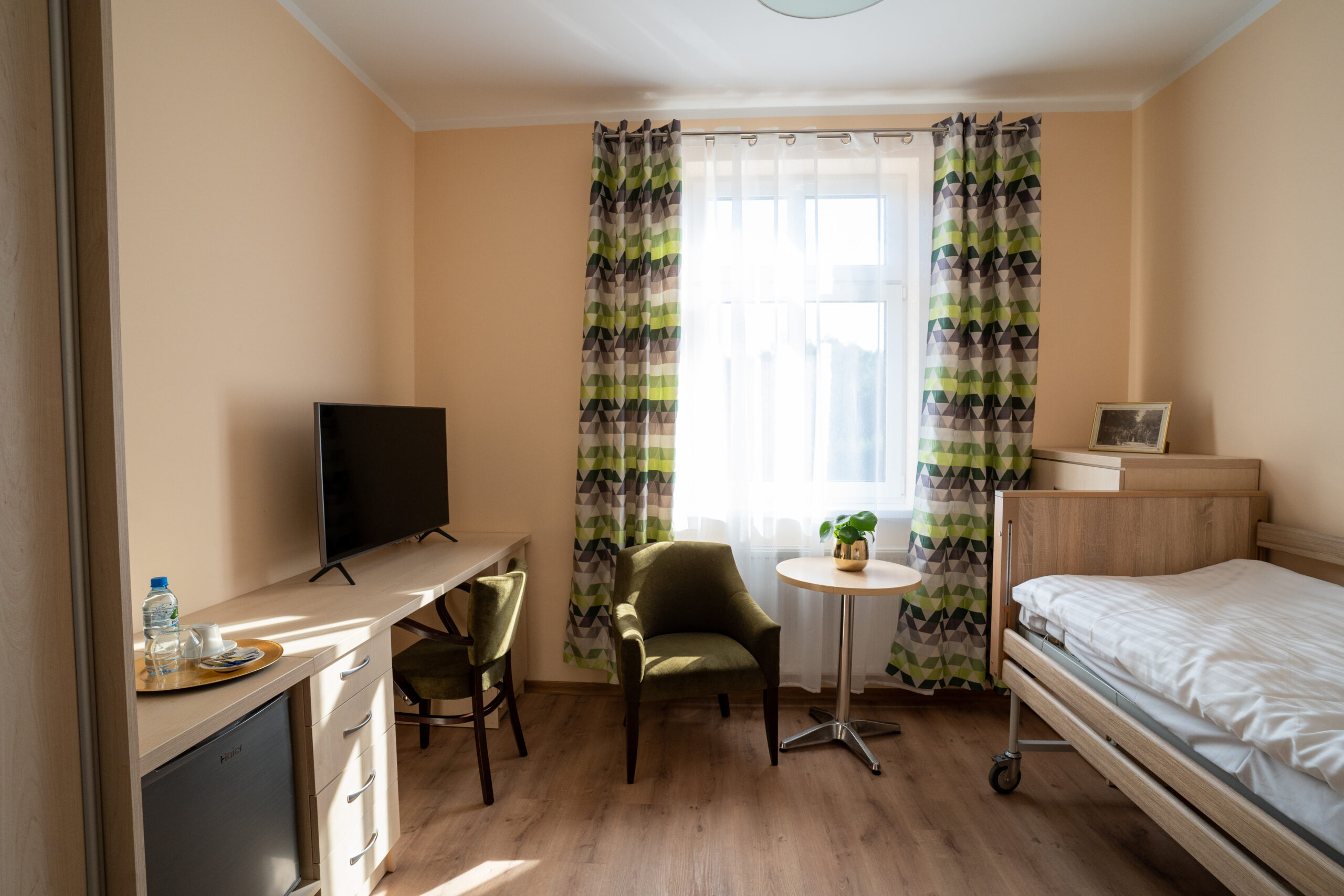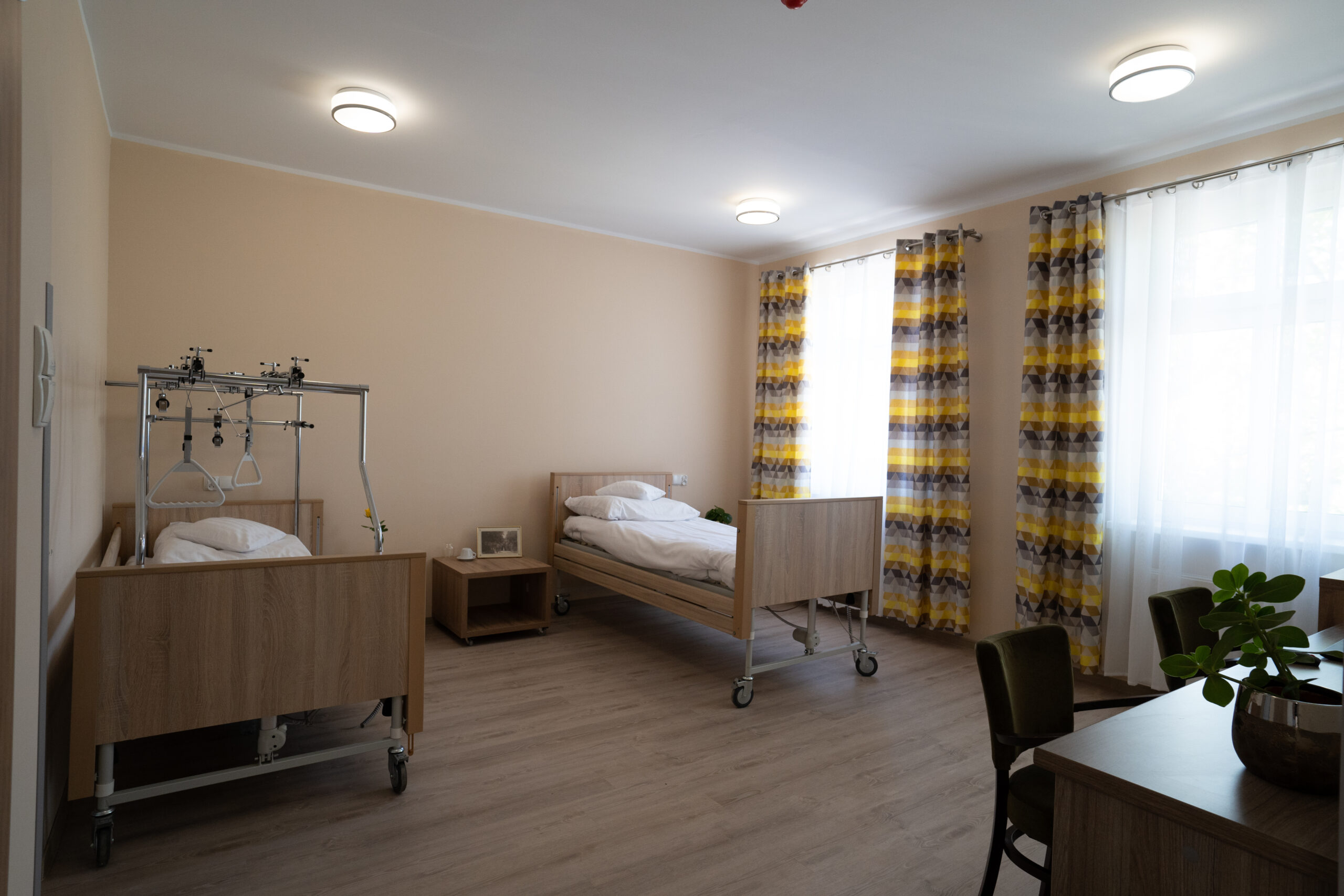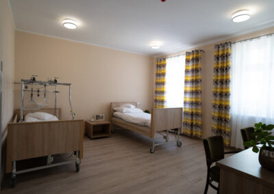 Zapewniamy pokoje 1-2 osobowe z łazienką, klimatyzacją i funkcjonalnym wyposażeniem, oraz specjalistycznym łóżkiem do prowadzenia indywidualnej rehabilitacji